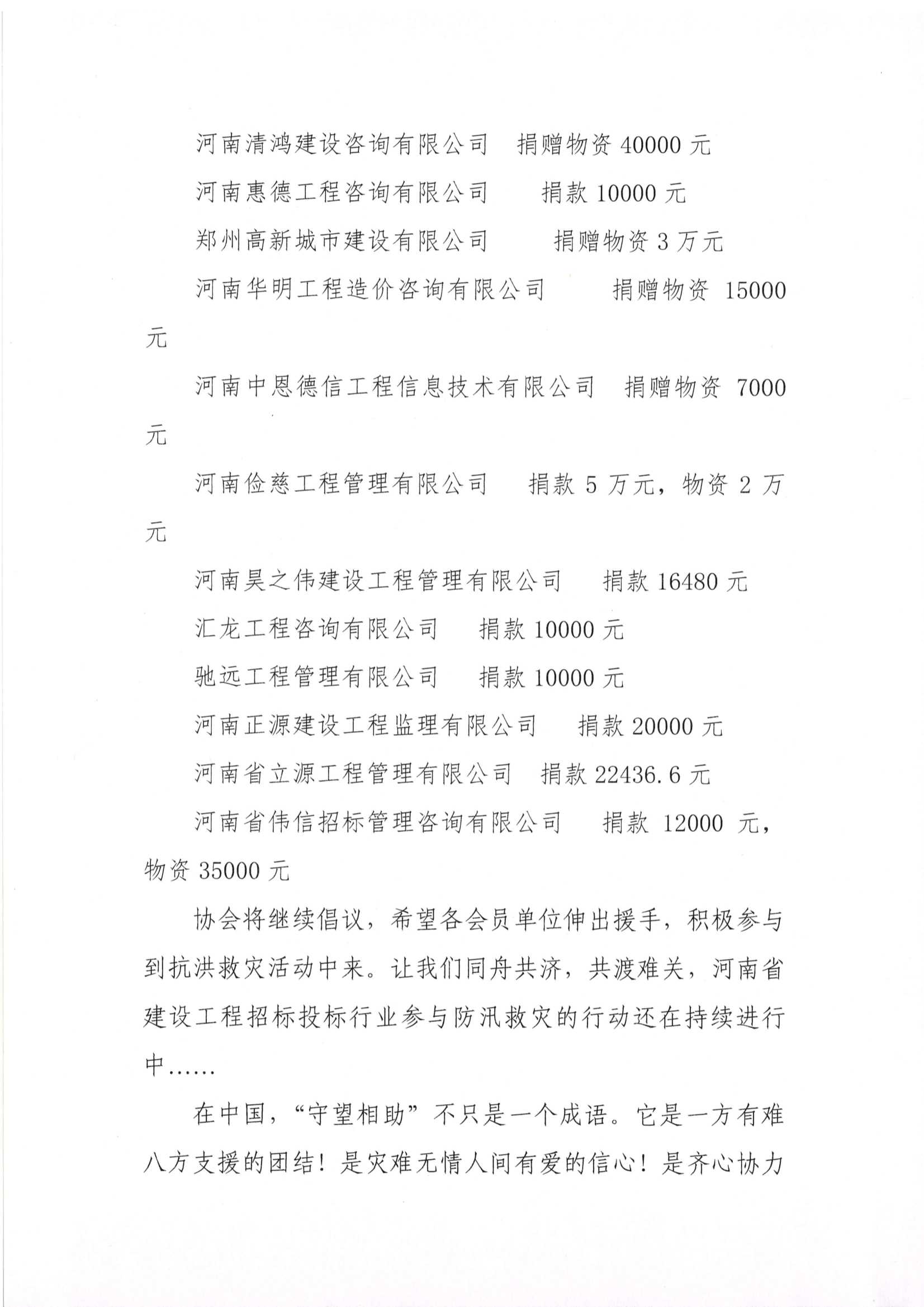 河南省建設工程招標投標協會發出防汛救災倡議無私援助在行動