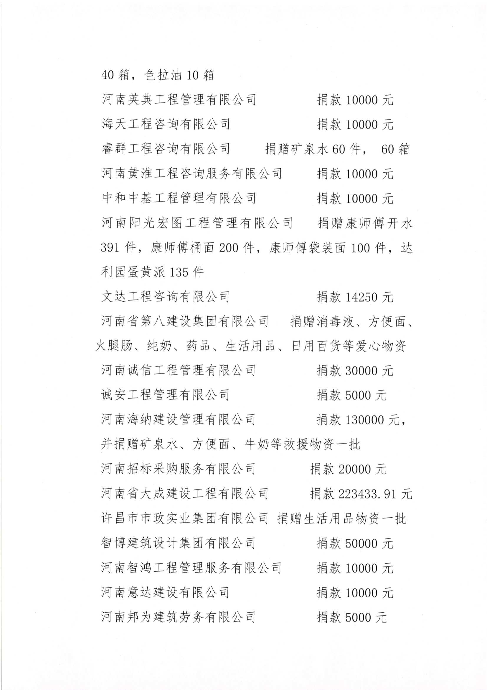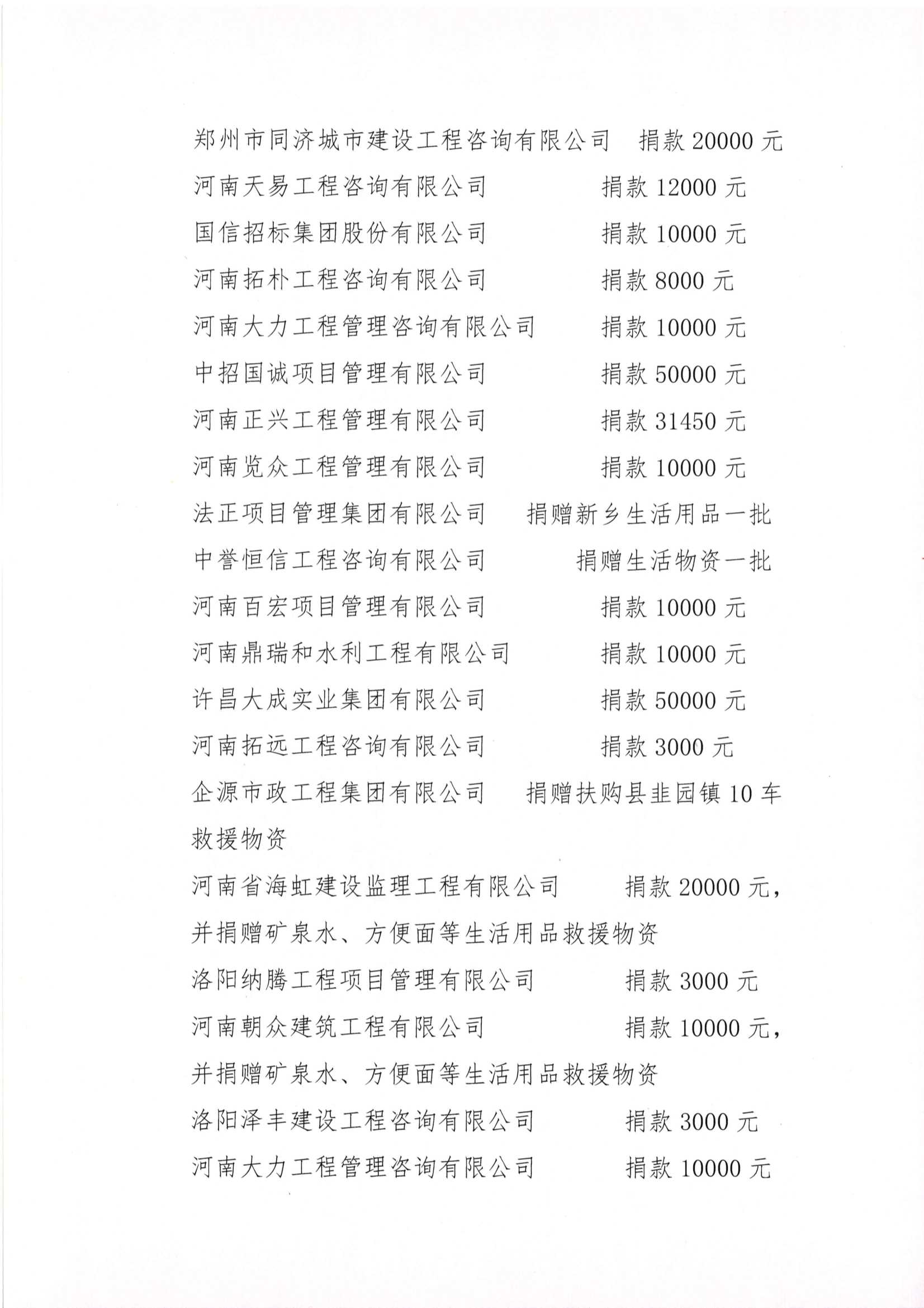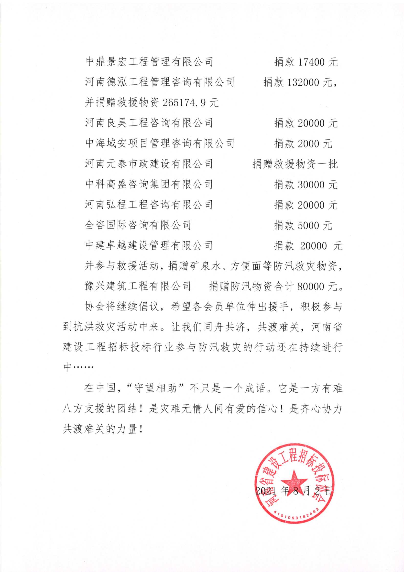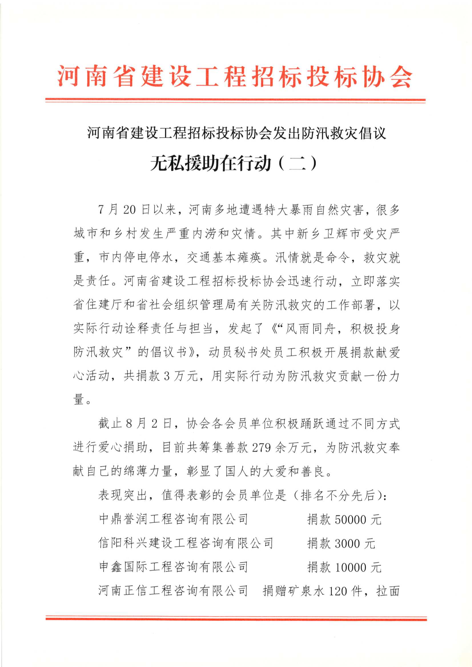 河南省建設工程招標投標協會發出防汛救災倡議無私援助在行動(二)
