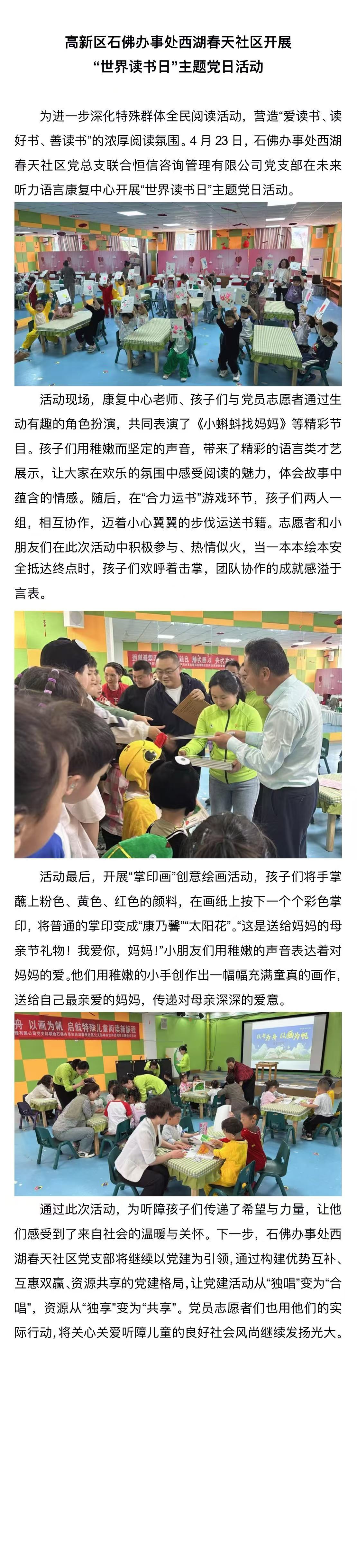 高新區石佛辦事處西湖春天社區開展 “世界讀書日”主題黨日活動