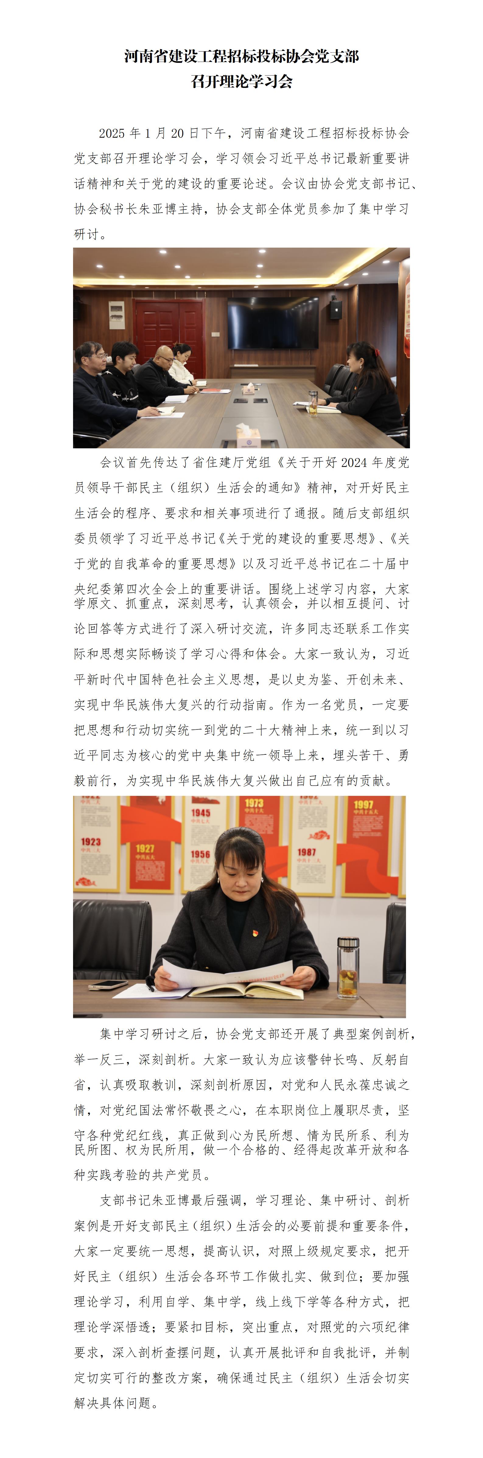 黨建學習丨河南省建設工程招標投標協會黨支部 召開理論學習會