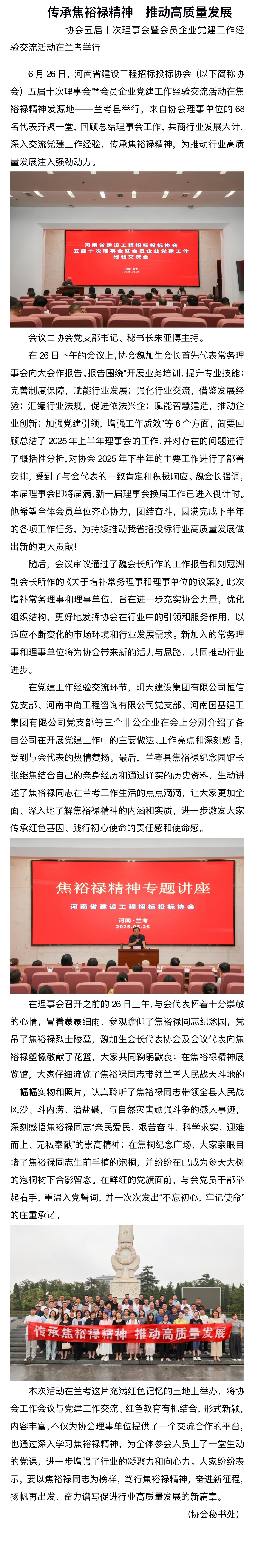 協(xié)會(huì)動(dòng)態(tài)丨協(xié)會(huì)五屆十次理事會(huì)暨會(huì)員企業(yè)黨建工作經(jīng)驗(yàn)交流活動(dòng)在蘭考舉行
