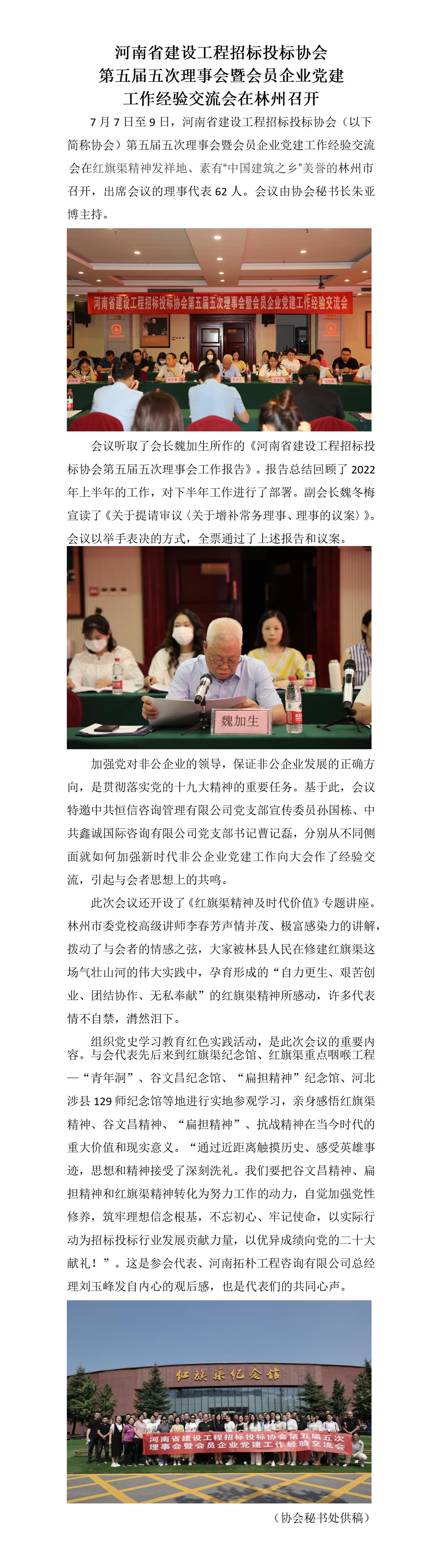 河南省建設工程招標投標協會第五屆五次理事會暨會員企業黨建工作經驗交流會在林州召開