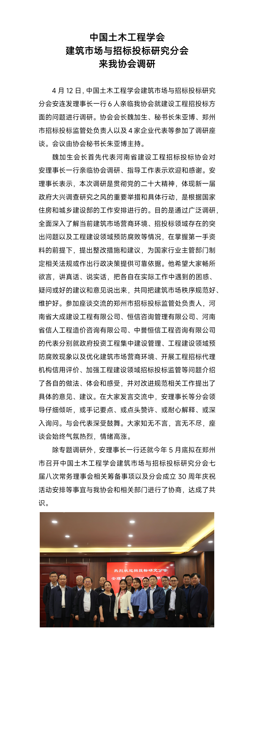 中國(guó)土木工程學(xué)會(huì)建筑市場(chǎng)與招標(biāo)投標(biāo)研究分會(huì)來(lái)我協(xié)會(huì)調(diào)研