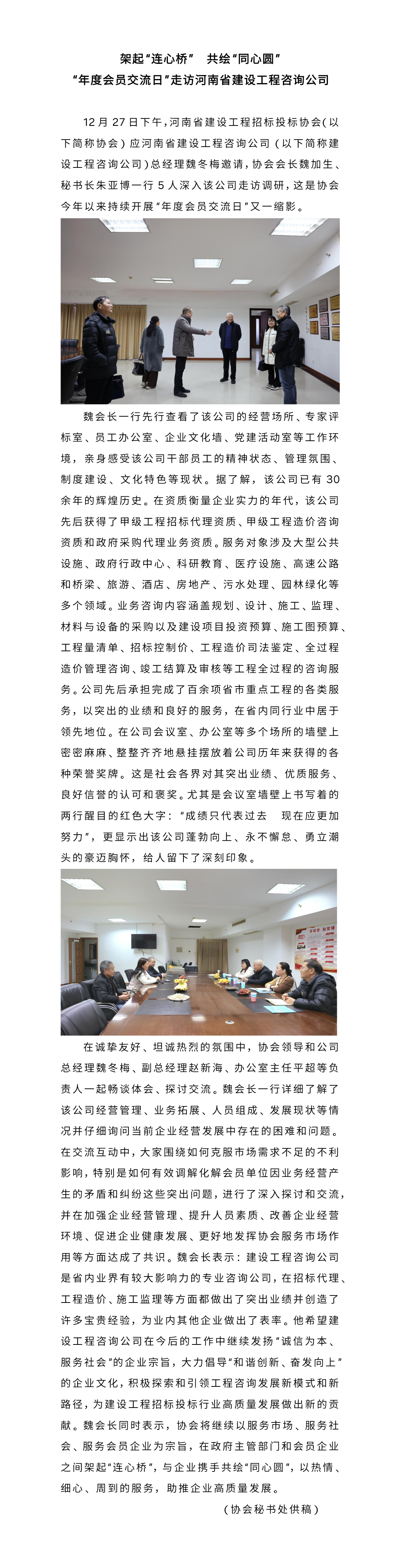 協會動態丨架起“連心橋” 共繪“同心圓” “年度會員交流日”走訪河南省建設工程咨詢公司