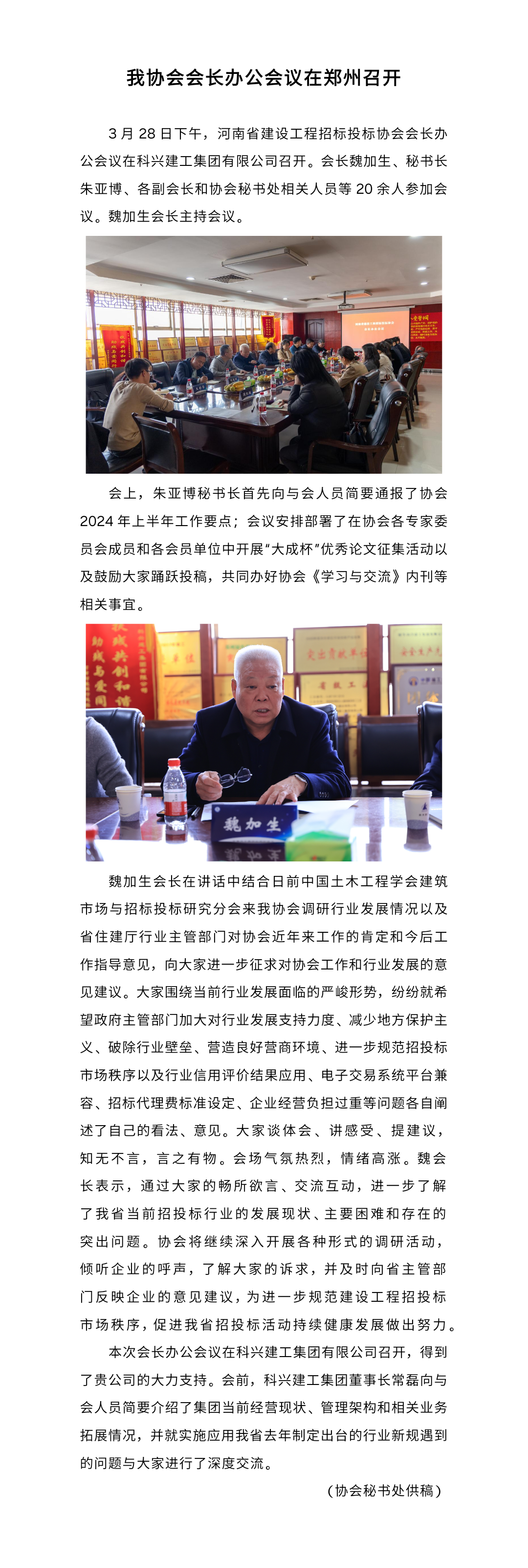 我協(xié)會會長辦公會議在鄭州召開