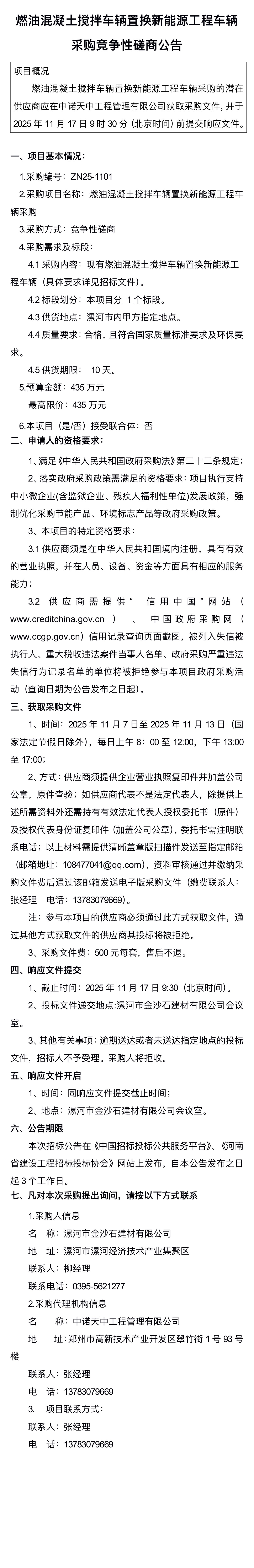 燃油混凝土攪拌車輛置換新能源工程車輛采購競爭性磋商公告