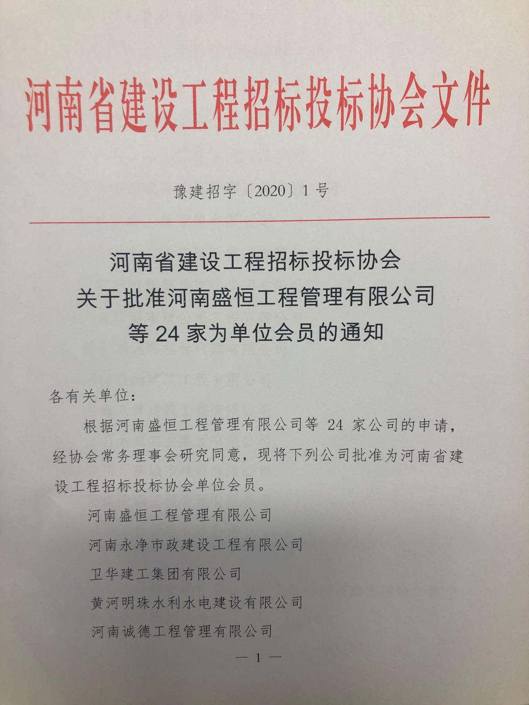 河南省建設工程招標投標協會關于批準河南盛恒工程管理有限公司等24家為單位會員的通知