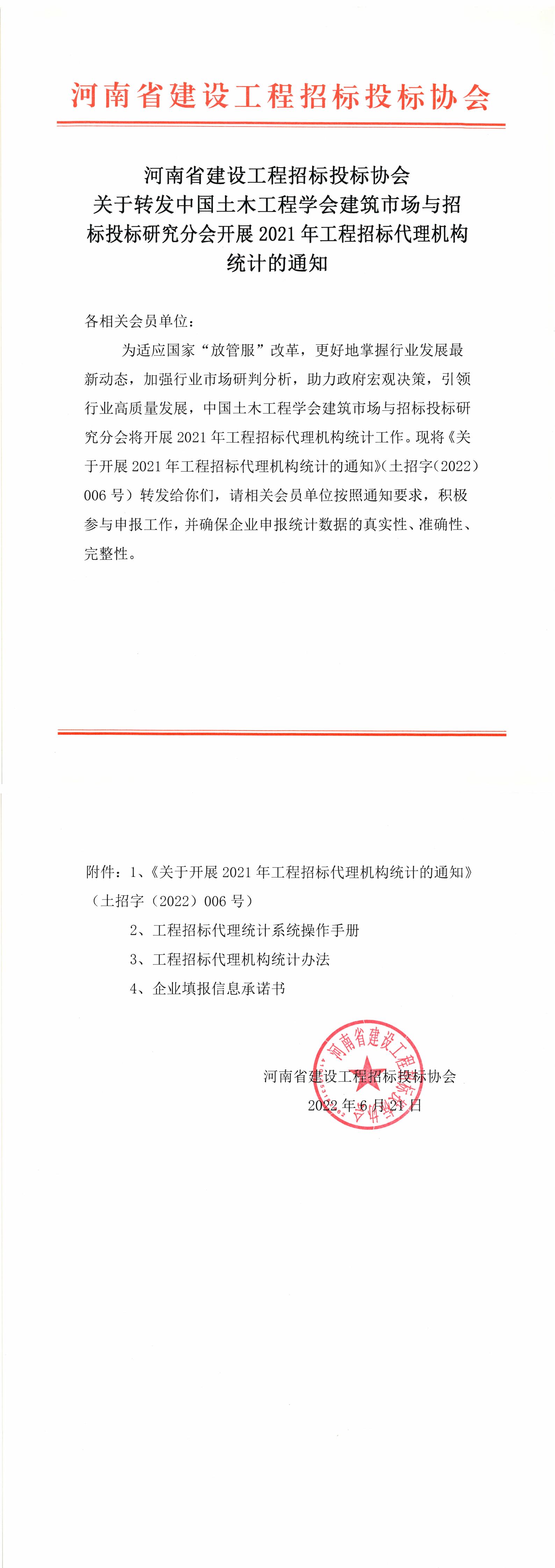 1、(土招字《關于開展 ⒛21年工程招標代理機構統計的通知》(2022) 006號