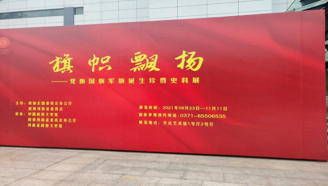 此次史料展由全國政協主辦,近期在河南巡展。展覽綜合運用圖片、檔案實物、多媒體視頻,多角度全景式展現黨旗國旗軍旗誕生過程,用黨的實踐創造和歷史經驗鼓舞斗志、啟迪智慧、凝聚力量。